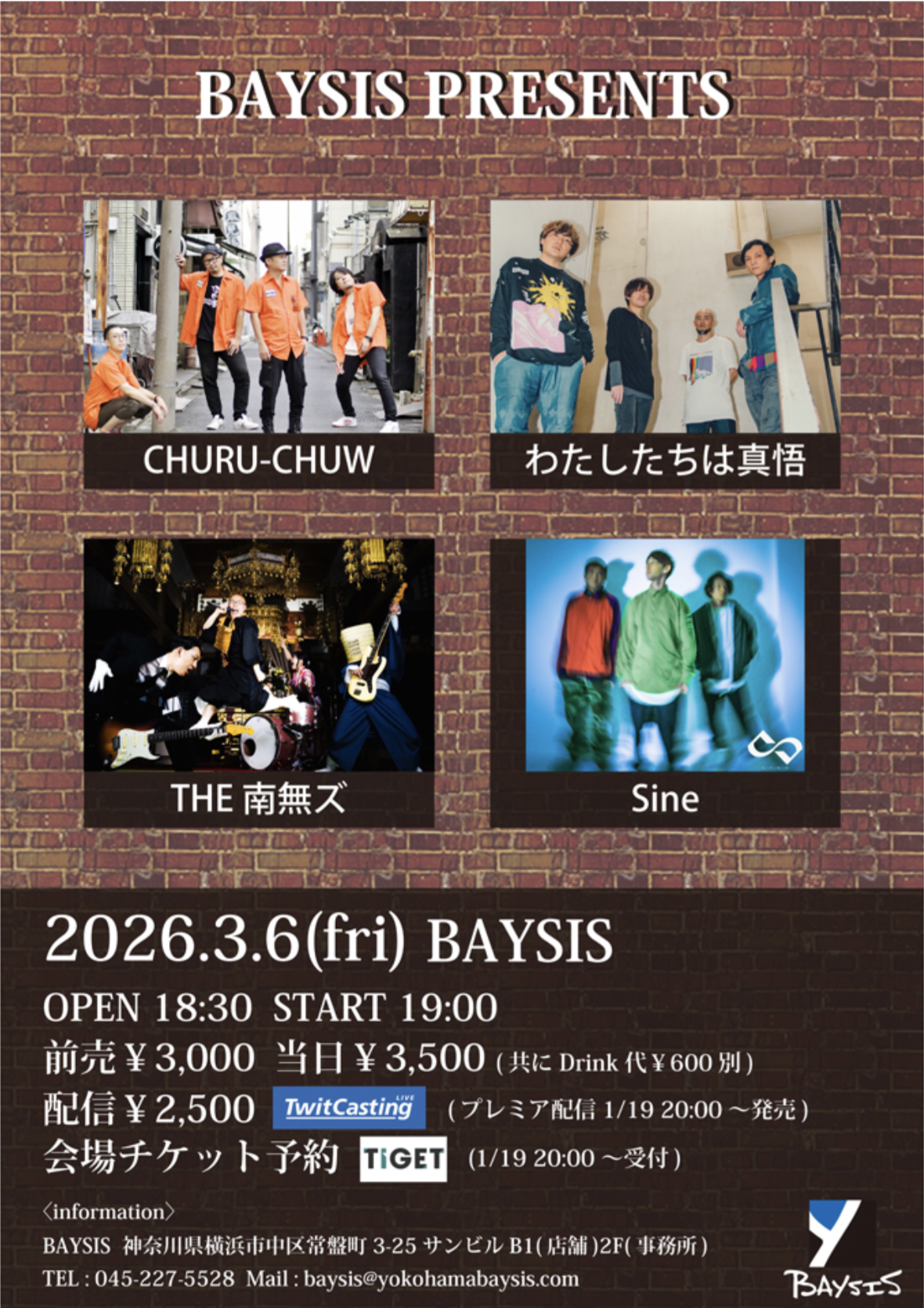 [会場] BAYSIS、Music Lab.濱書房、YOKOHAMA ReNY beta でのサーキットイベントとなります。